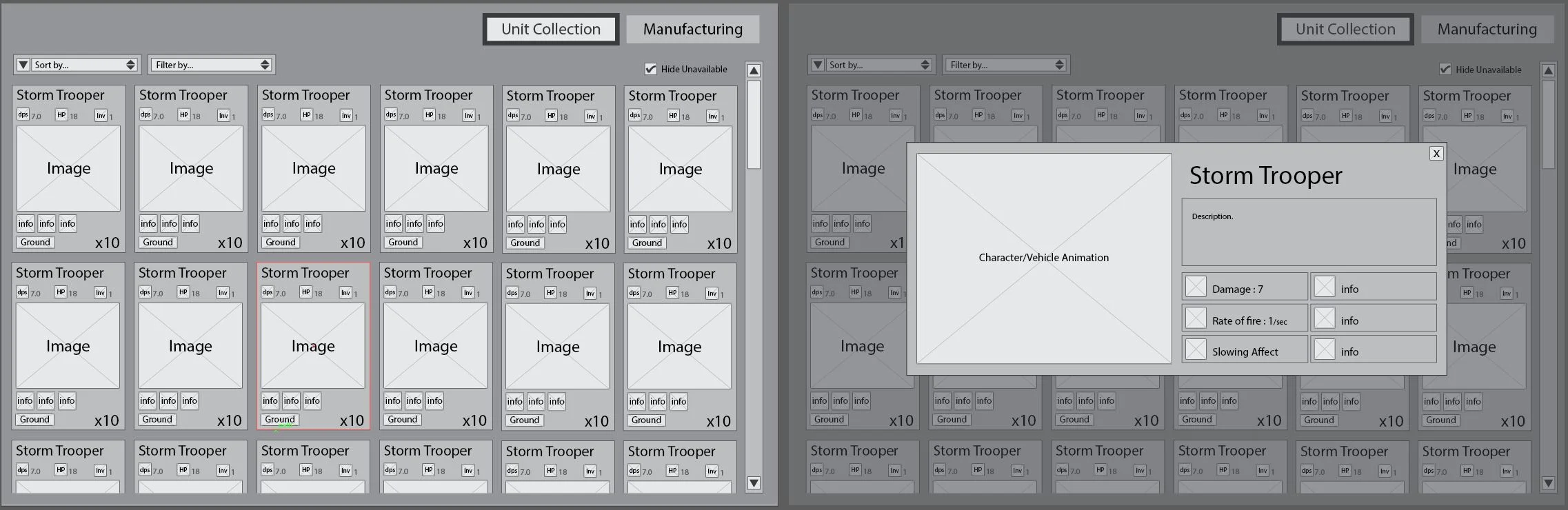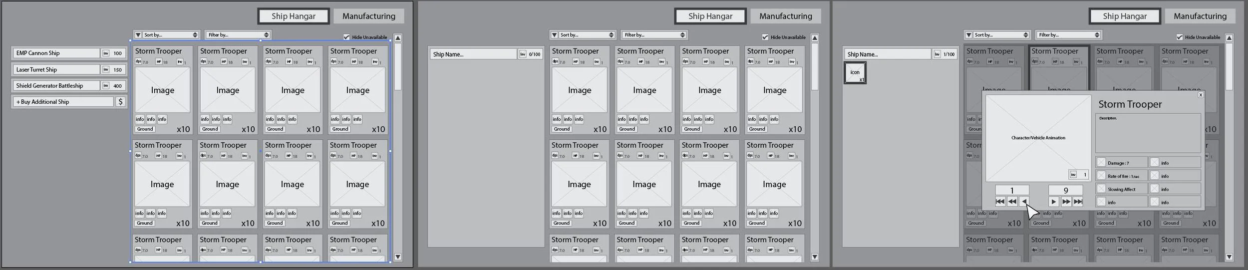 Pluto is a combat/simulation game. Unfortunately, due to an NDA, I am unable to show more finalized images of this project. However, without getting into too much detail, I can share some of the earlier wireframes and images showing process.